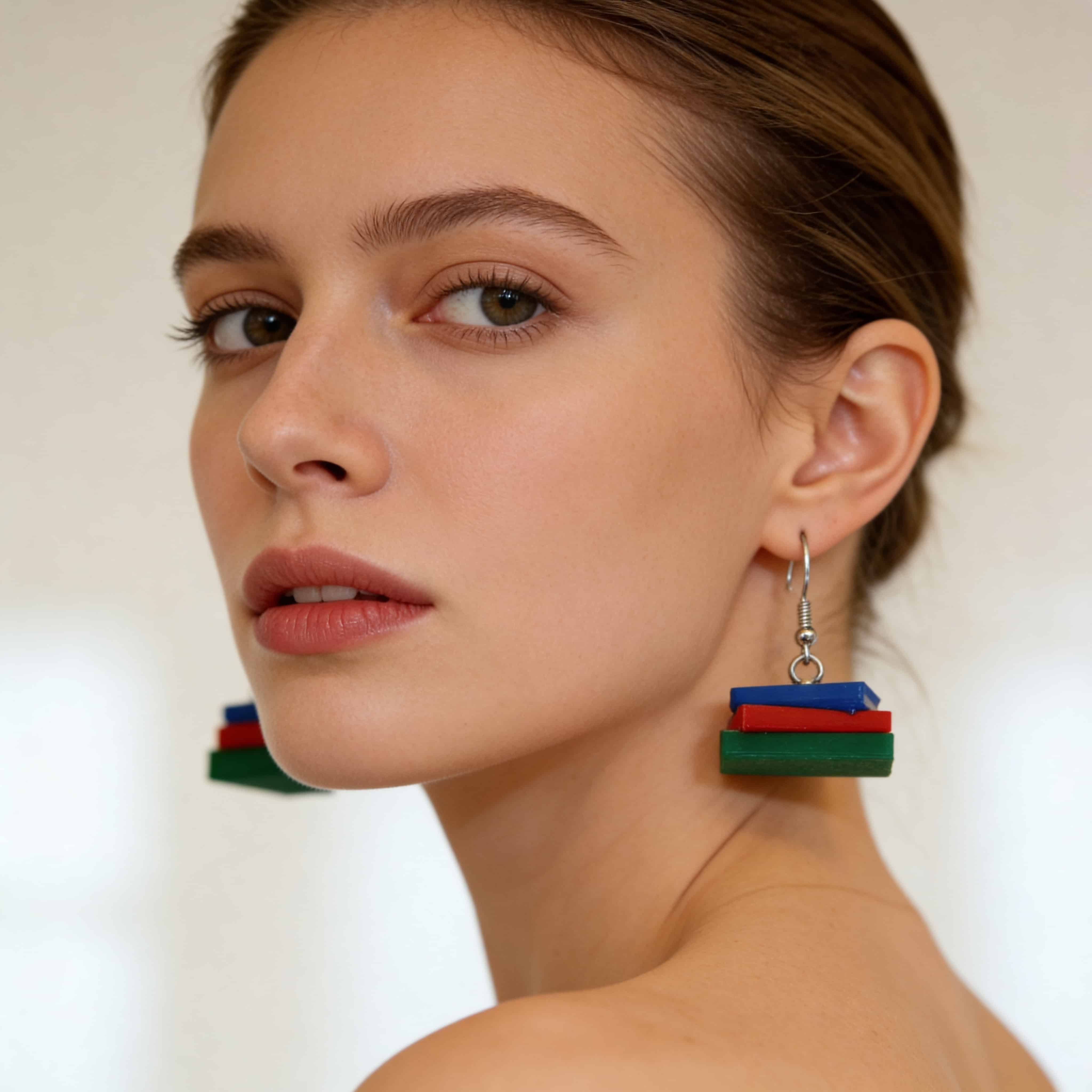 Show your love for reading and learning with these Book Stack Earrings, a playful and thoughtful accessory for teachers, students, librarians, and book enthusiasts. Featuring a charming stacked book design in bright, eye-catching colors, these earrings bring personality and style to any outfit while celebrating the joy of education. Lightweight and comfortable, they are perfect for all-day wear at school, the library, or casual outings.