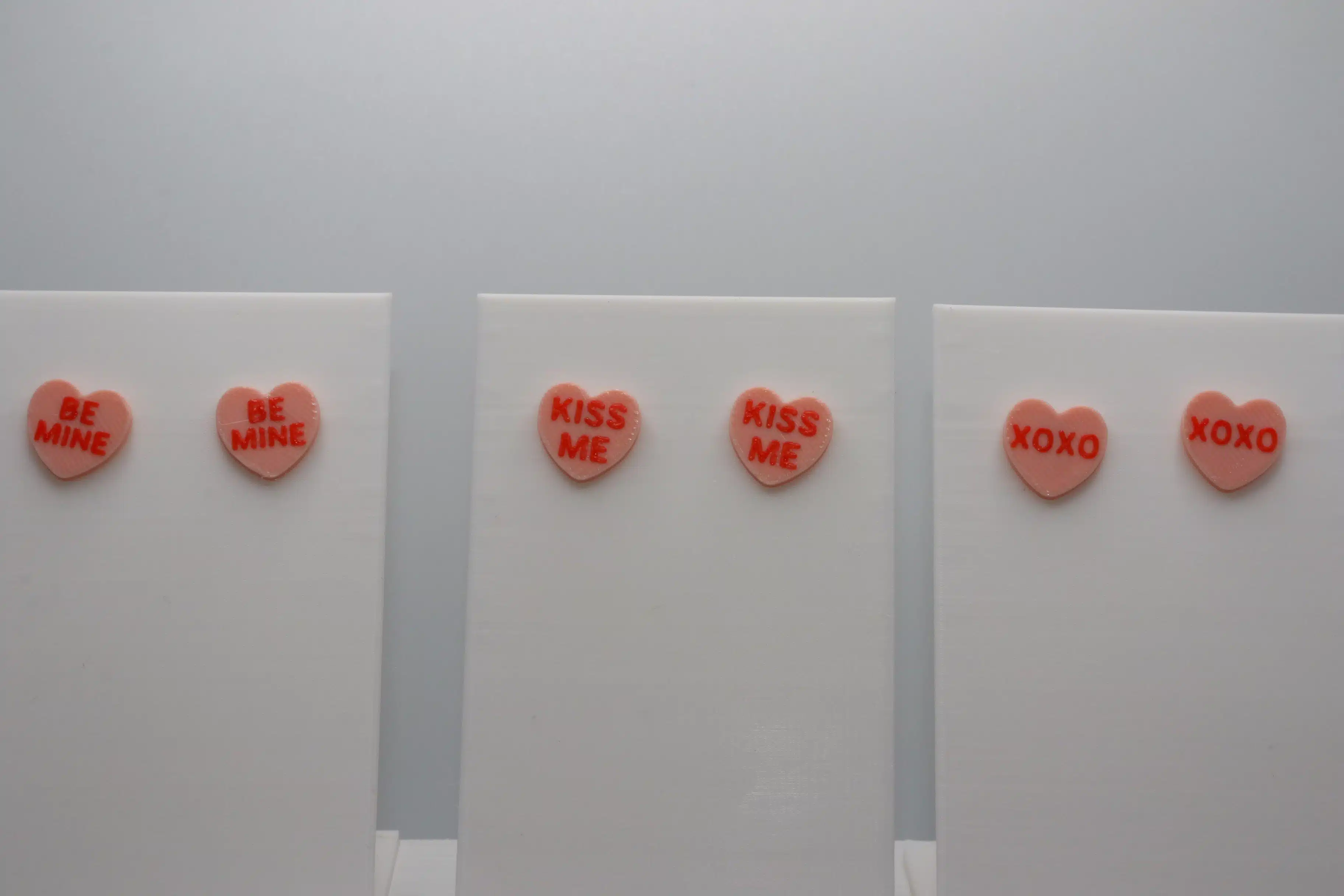 These Conversation Hearts Stud Earrings capture the playful spirit of Valentine’s Day with a fun, nostalgic design inspired by classic candy hearts. Featuring colorful heart shapes with cheerful, recognizable messages, they add a lighthearted and charming touch to any outfit. The stud style keeps the look simple and easy to wear while still making a festive statement.