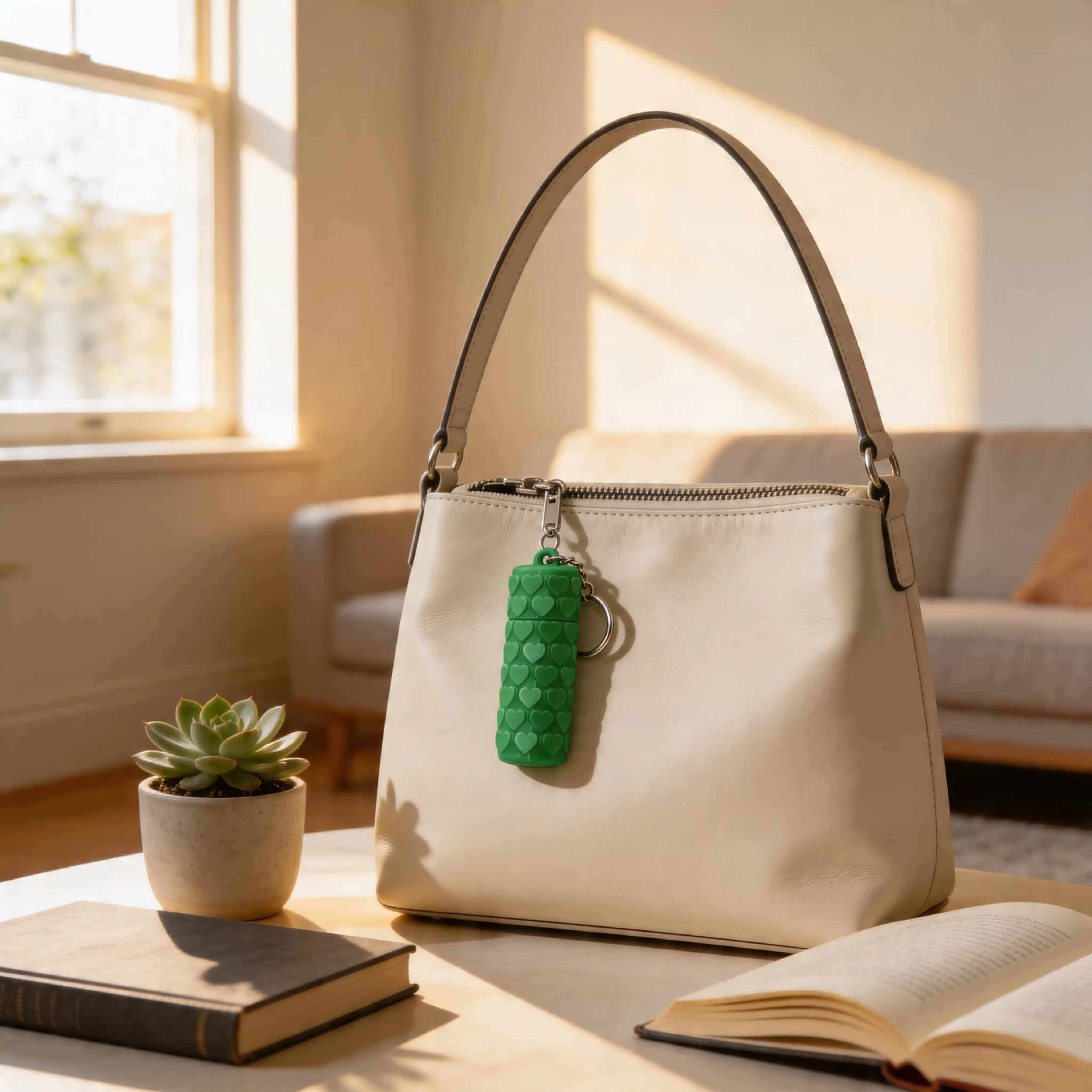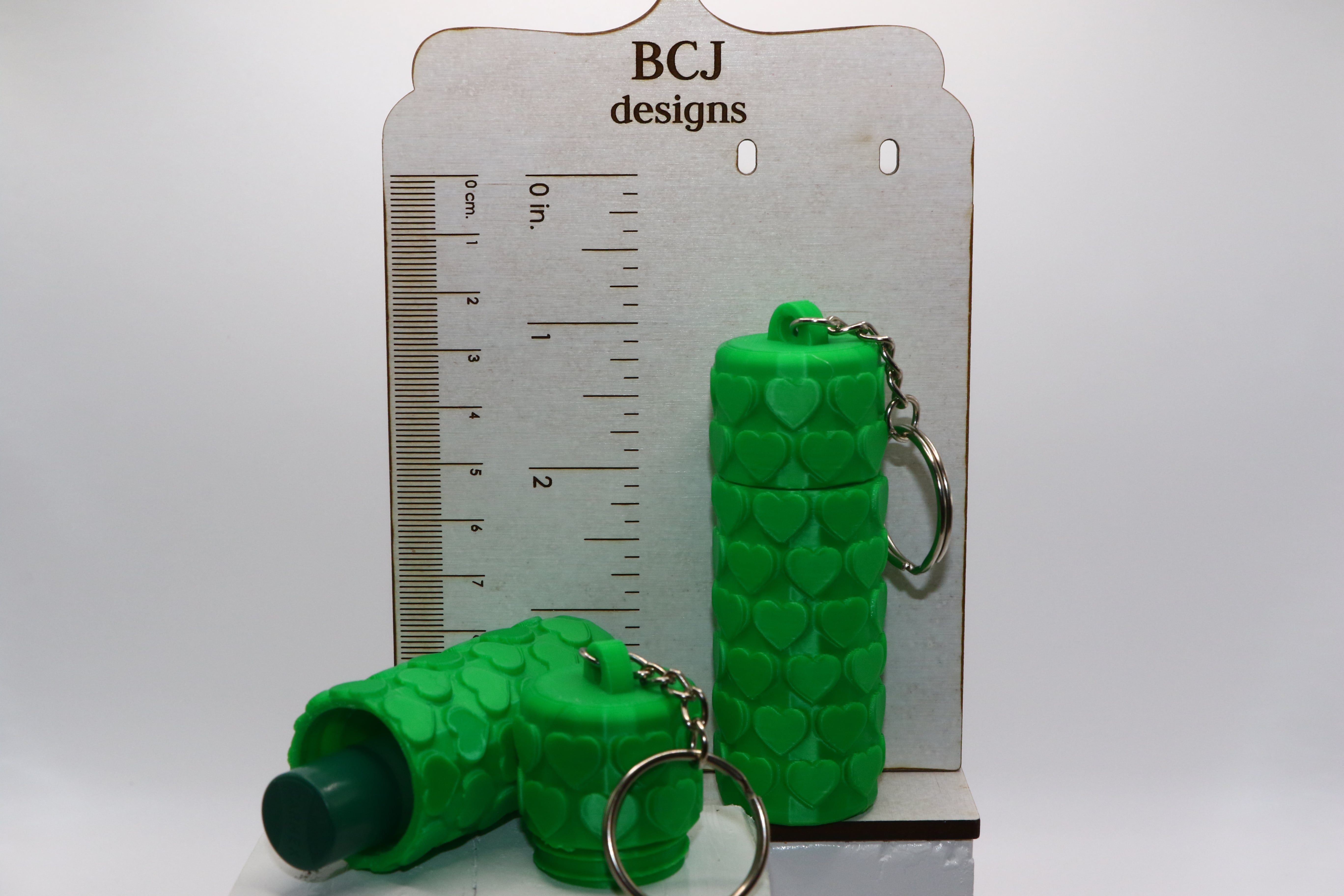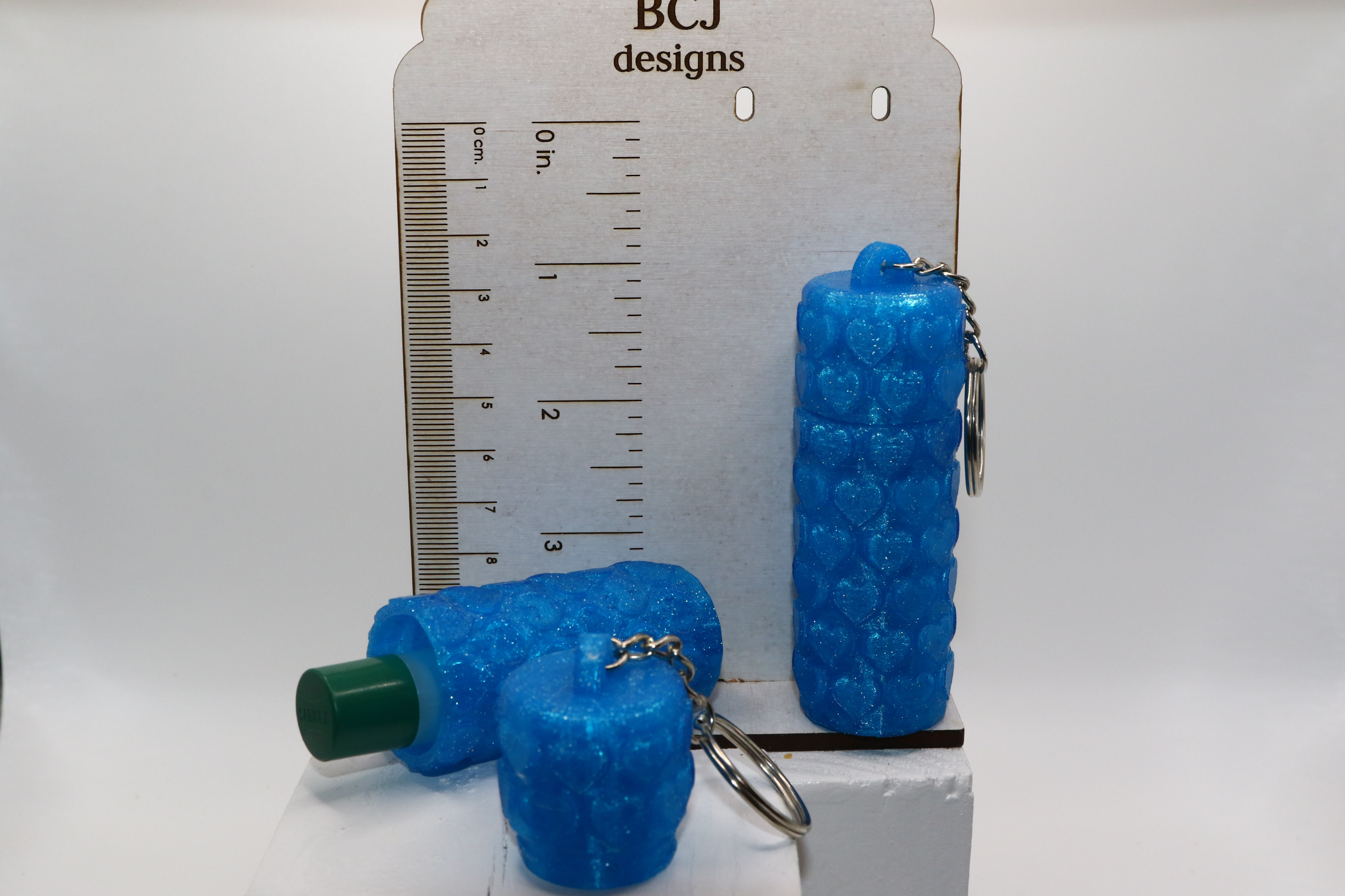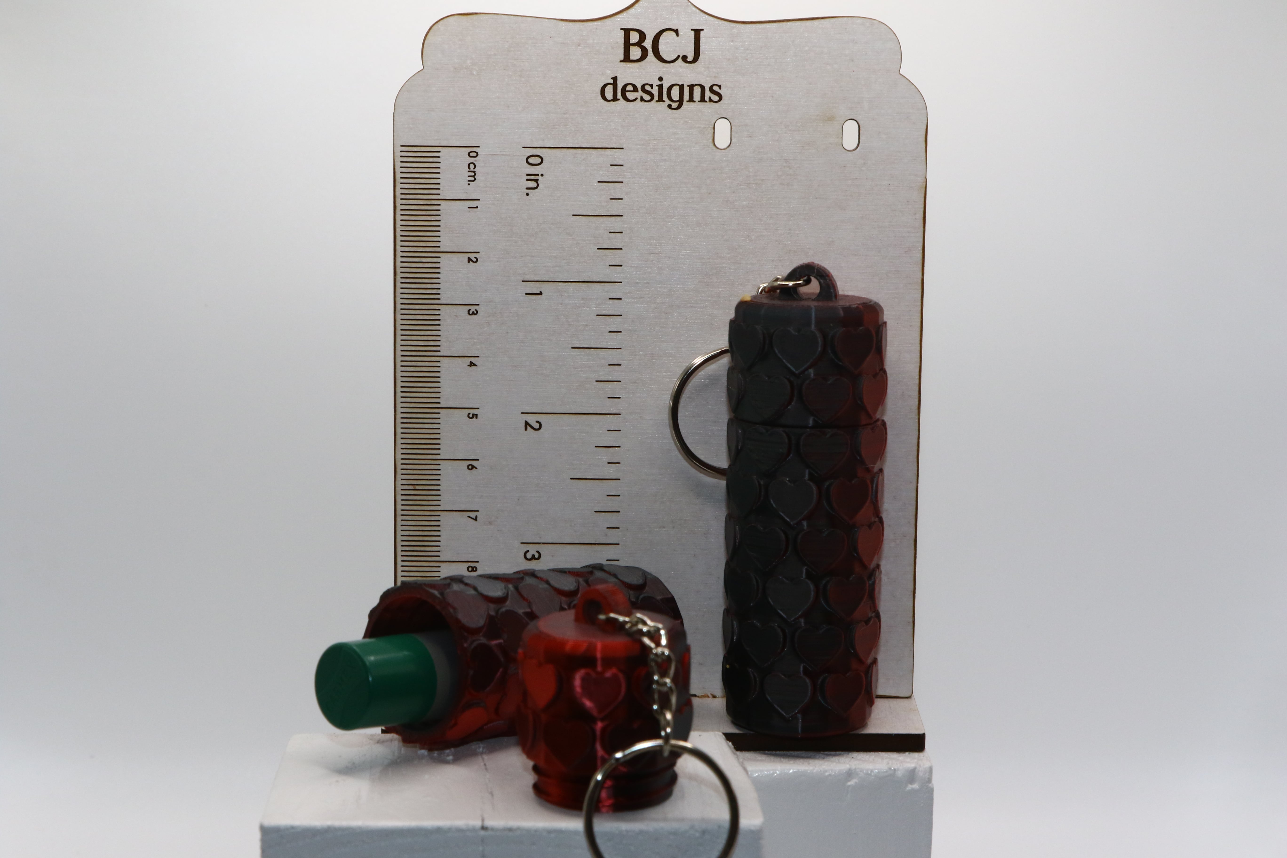 The raised heart texture adds dimension and grip while giving the design a bold, eye-catching look. Lightweight but durable, this Chapstick Holder Keychain is practical for daily carry and stylish enough to stand out.