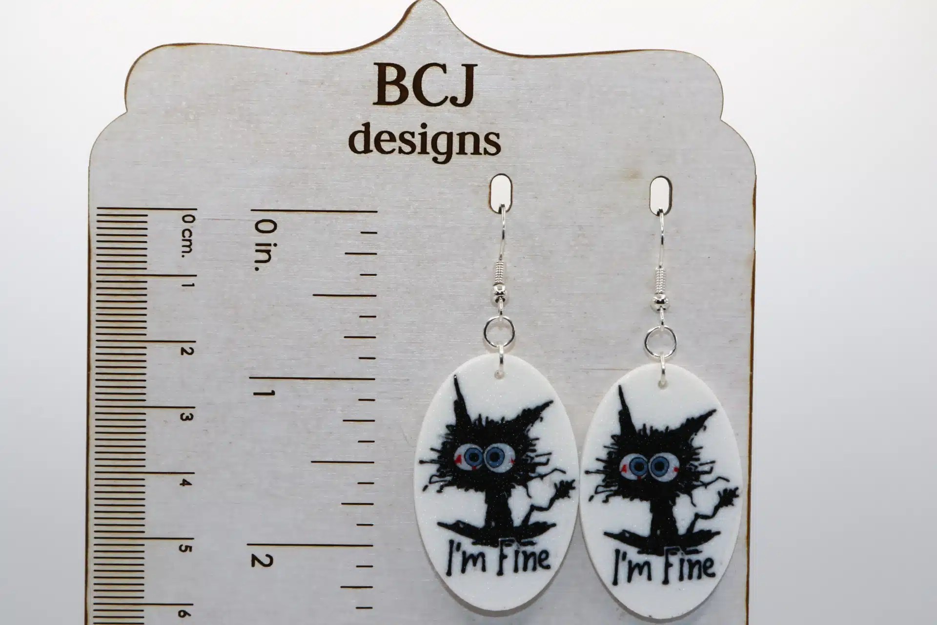Show your playful side with these I’m Fine Cat earrings! Featuring the funny “I’m Fine” cat design, these earrings are perfect for casual outfits, humor-themed looks, or fans of quirky accessories. Lightweight and comfortable, they make a fun, conversation-starting accessory for everyday wear. Ideal as a gift for friends, family, or cat lovers with a sense of humor, they bring personality and charm to any ensemble. Pair them with casual outfits, layered jewelry, or quirky collections for a bold, whimsical statement accessory. These earrings perfectly balance humor and style.