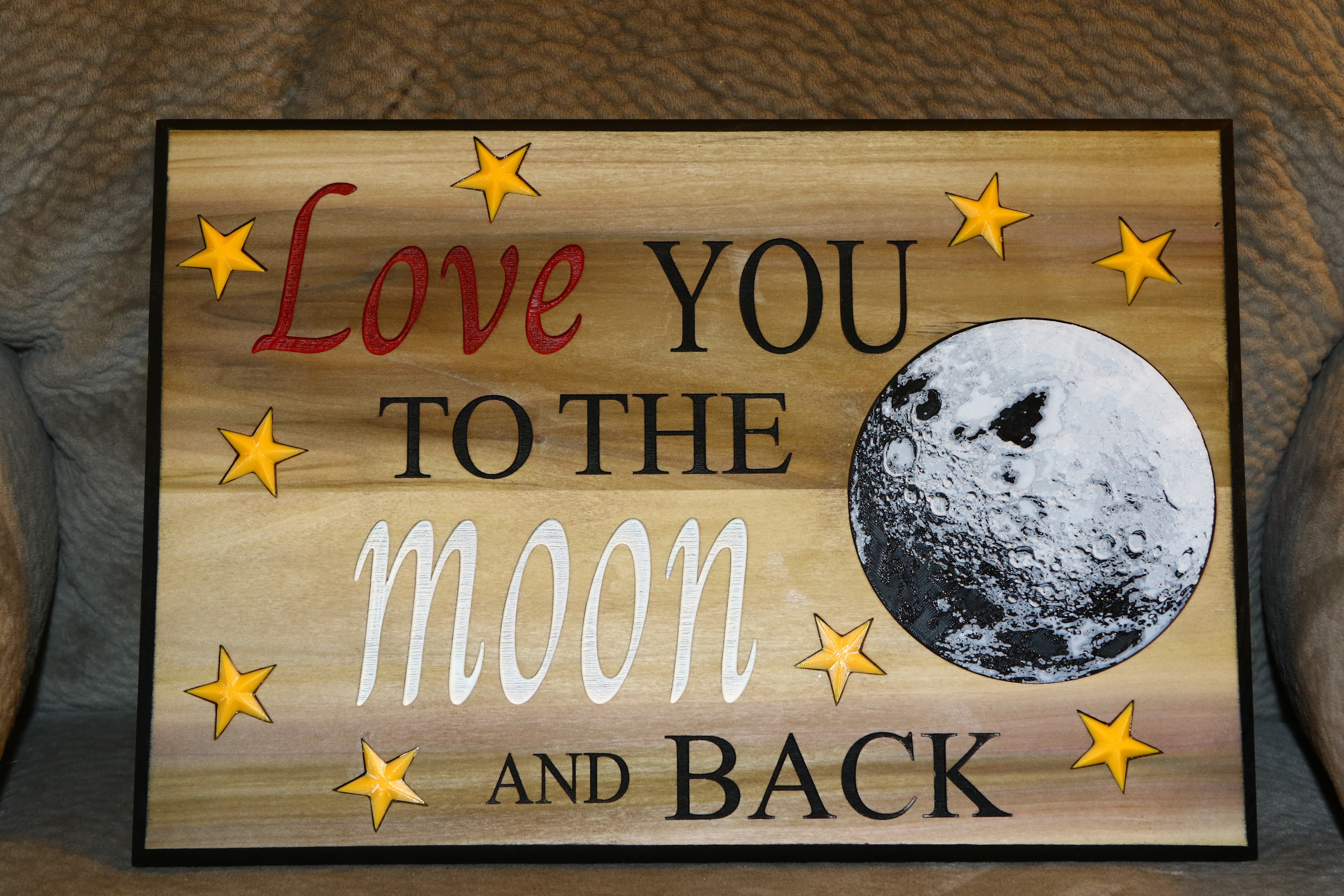 Laser-engraved “Love You to the Moon and Back” design