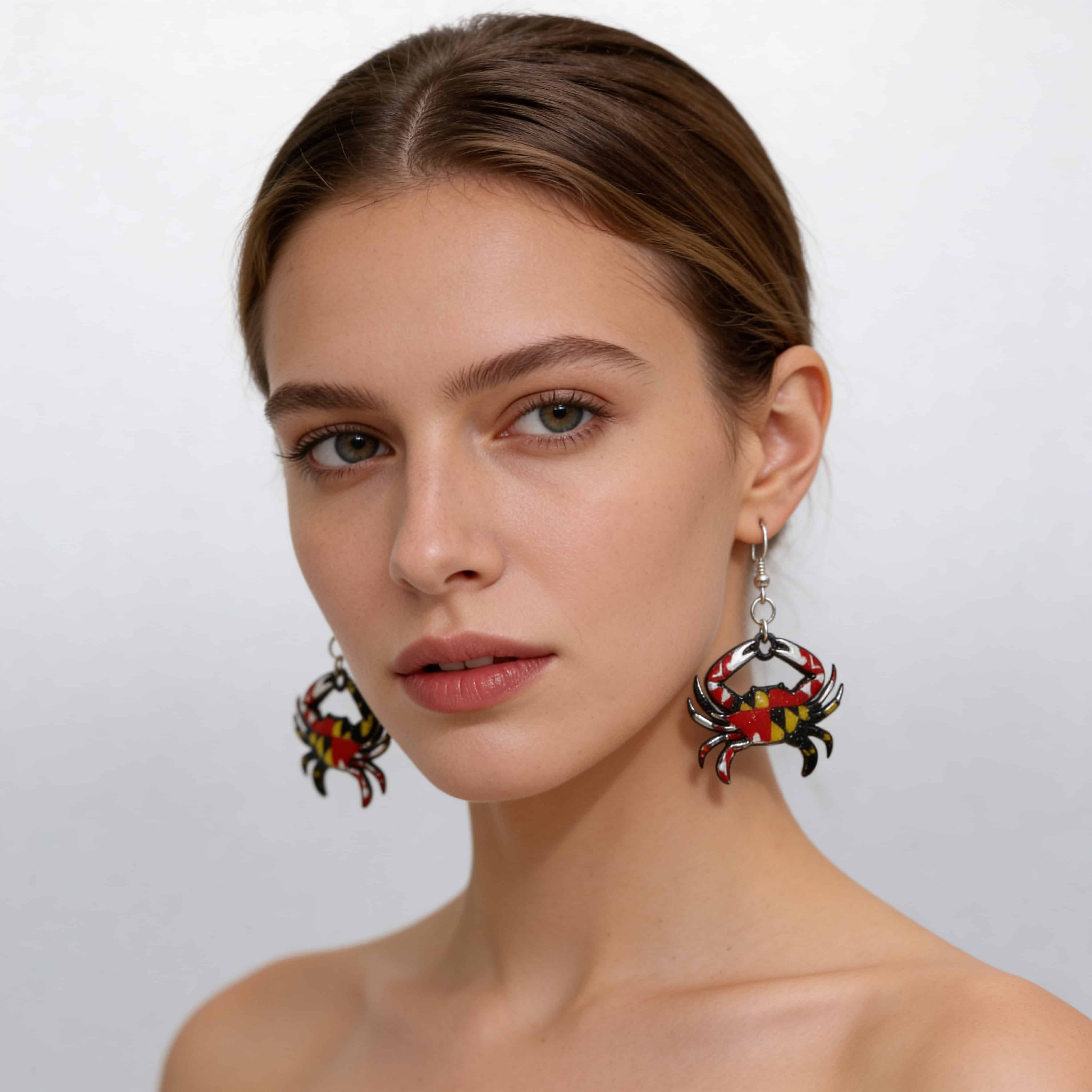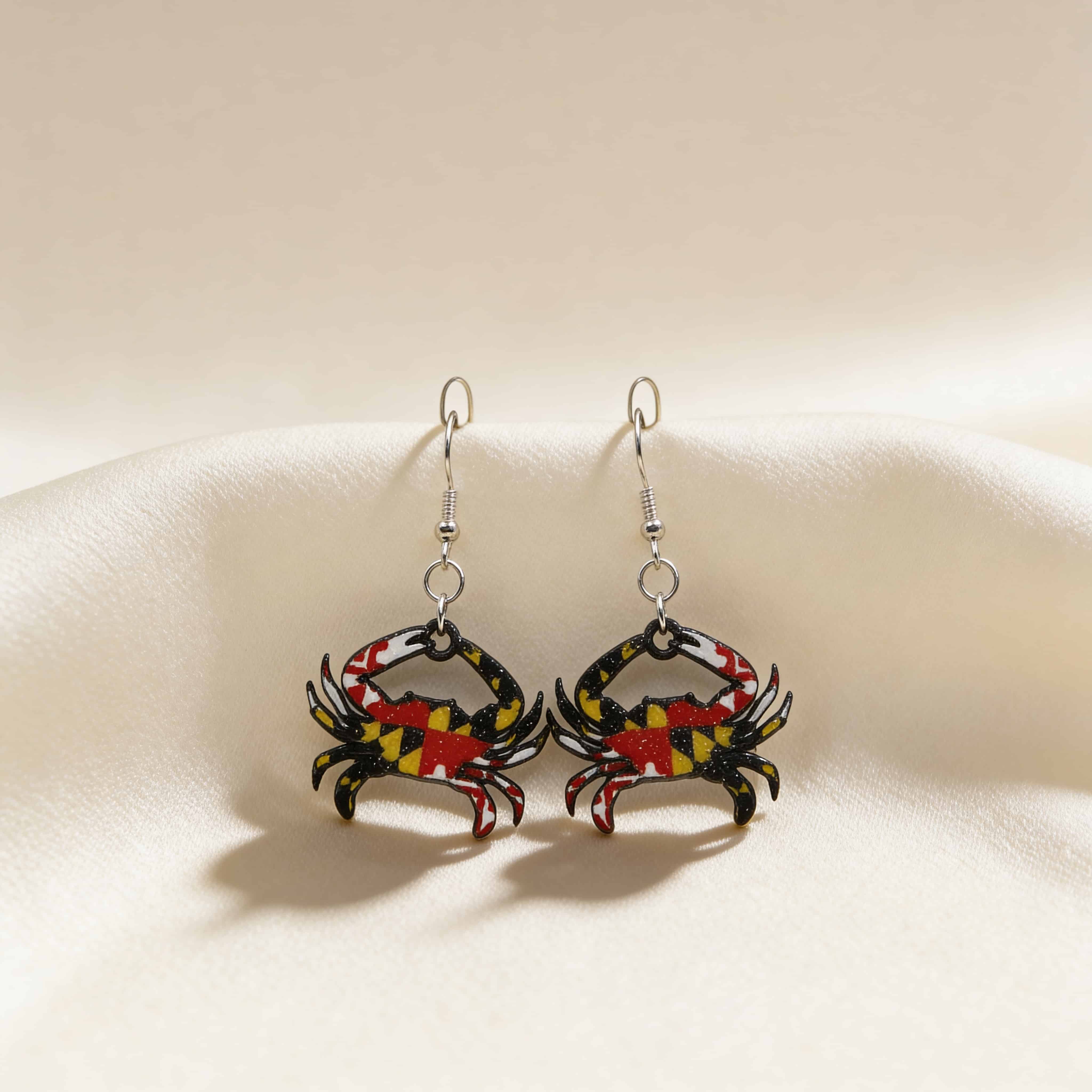 Show off your state pride with these Maryland Crab Flag Earrings, designed to celebrate coastal charm and local tradition. Featuring the iconic Maryland flag pattern inside a detailed crab silhouette, this pair captures the bold personality and unmistakable style of the Old Line State.