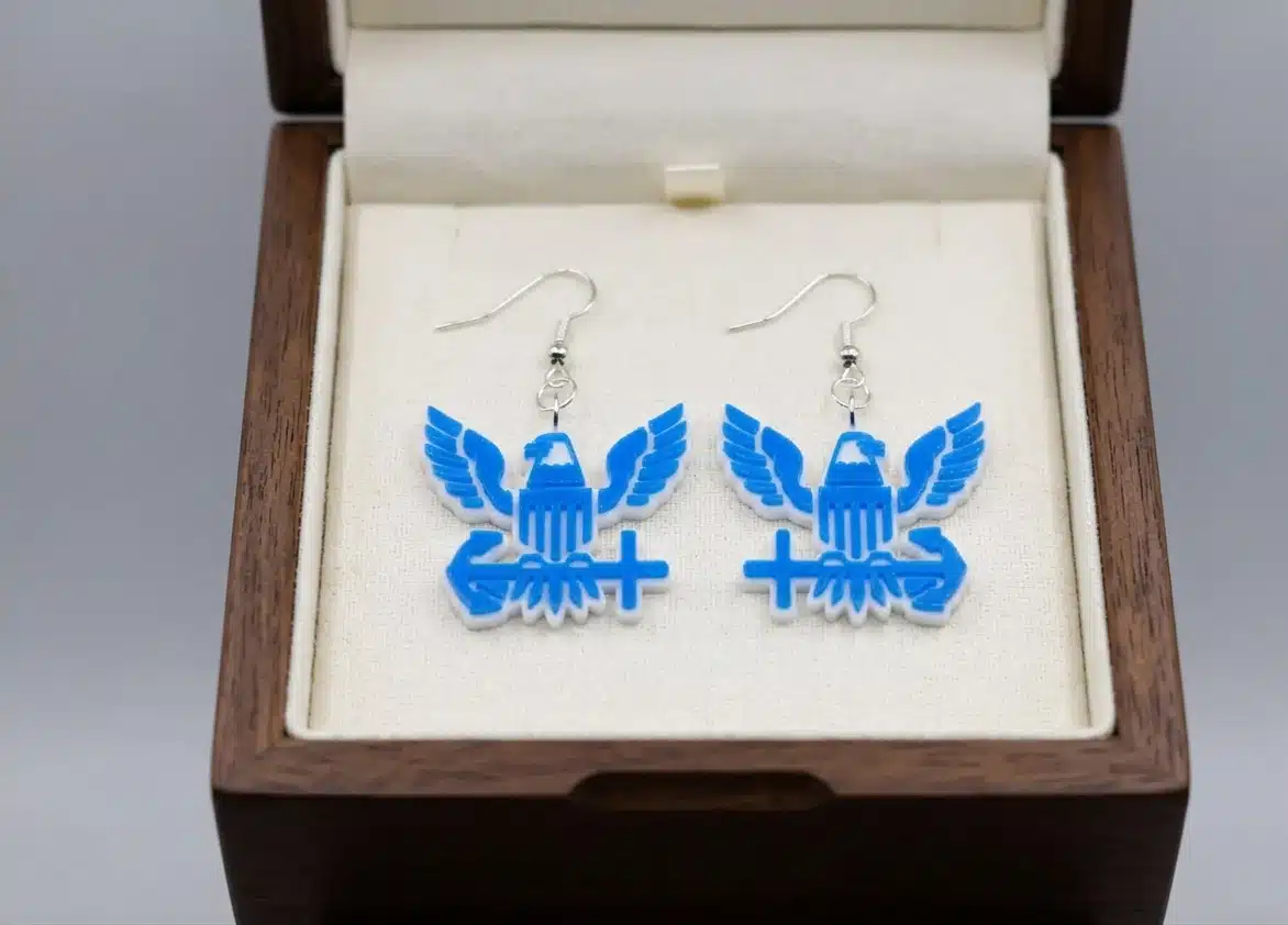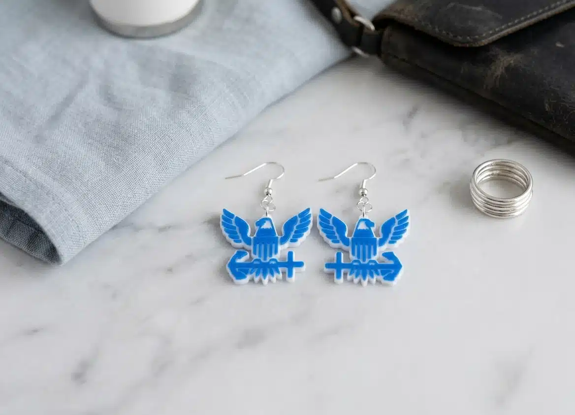 Navy Earrings are a stylish way to celebrate and support the United States Navy. Featuring a bold and recognizable design, these lightweight earrings are perfect for service members, veterans, patriotic events, or everyday wear. Comfortable and versatile, they pair effortlessly with casual outfits, dressy looks, or patriotic ensembles, making them ideal for anyone who wants to honor the men and women serving at sea.