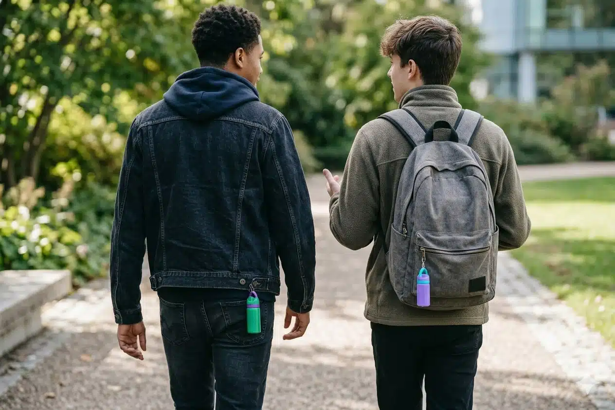 Bought at Delcastle Tech — owner was amazing! Fits perfectly on my backpack and keeps my chapstick handy all day.