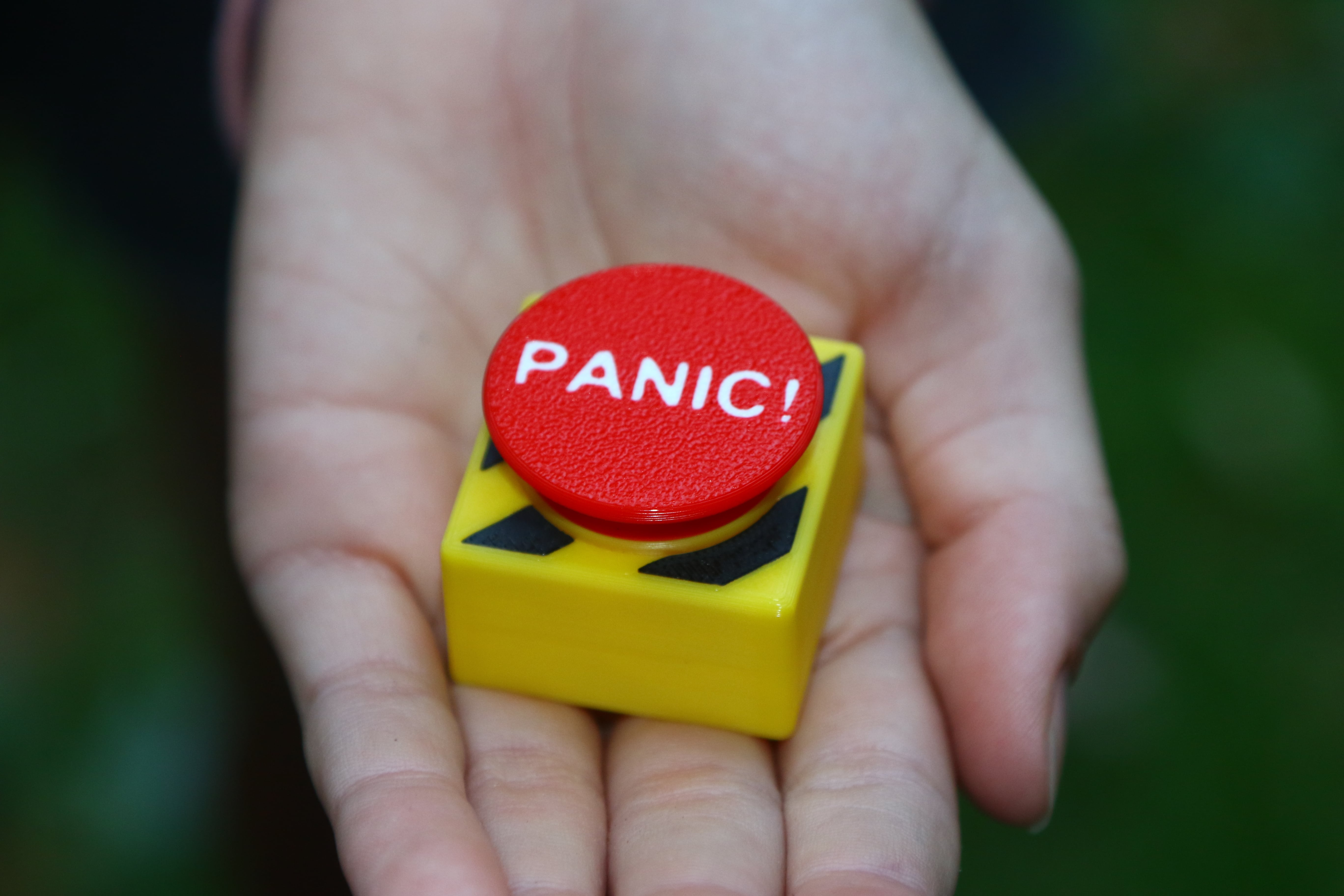 Hit the Panic Button Fidget when stress strikes! This satisfying toy delivers tactile clicks to calm nerves, improve focus, and keep your hands busy. Compact and fun, it’s ideal for desks, school, or travel. Its bold design makes it a standout addition to any fidget collection and a conversation starter. Perfect for anyone who loves quirky stress relief toys, the Panic Button Fidget blends humor and functionality in one playful package.