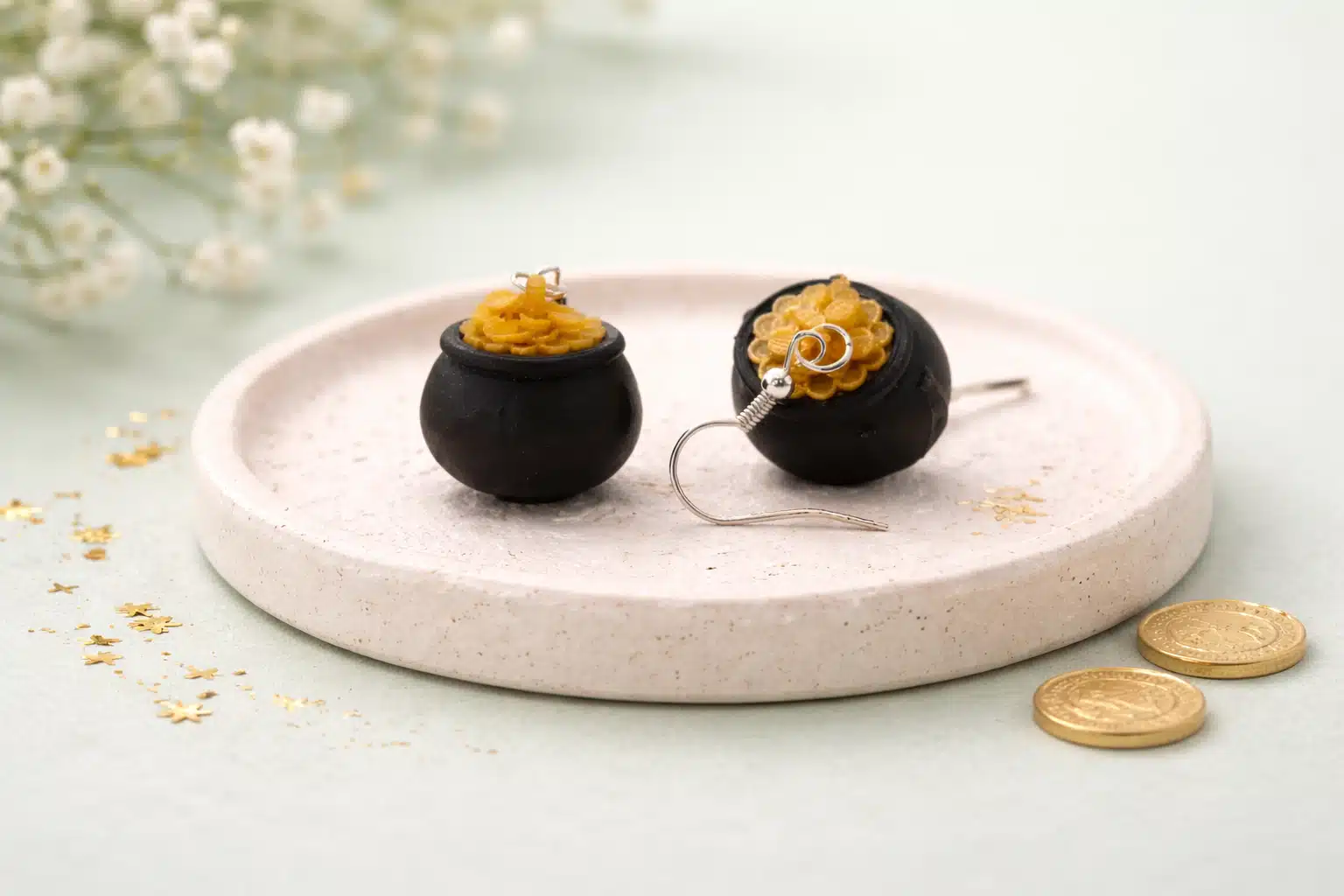 They also make a sweet seasonal gift. The pot of gold is a familiar symbol of luck, which makes these earrings a thoughtful choice for friends, coworkers, teachers, or anyone who loves themed jewellery.