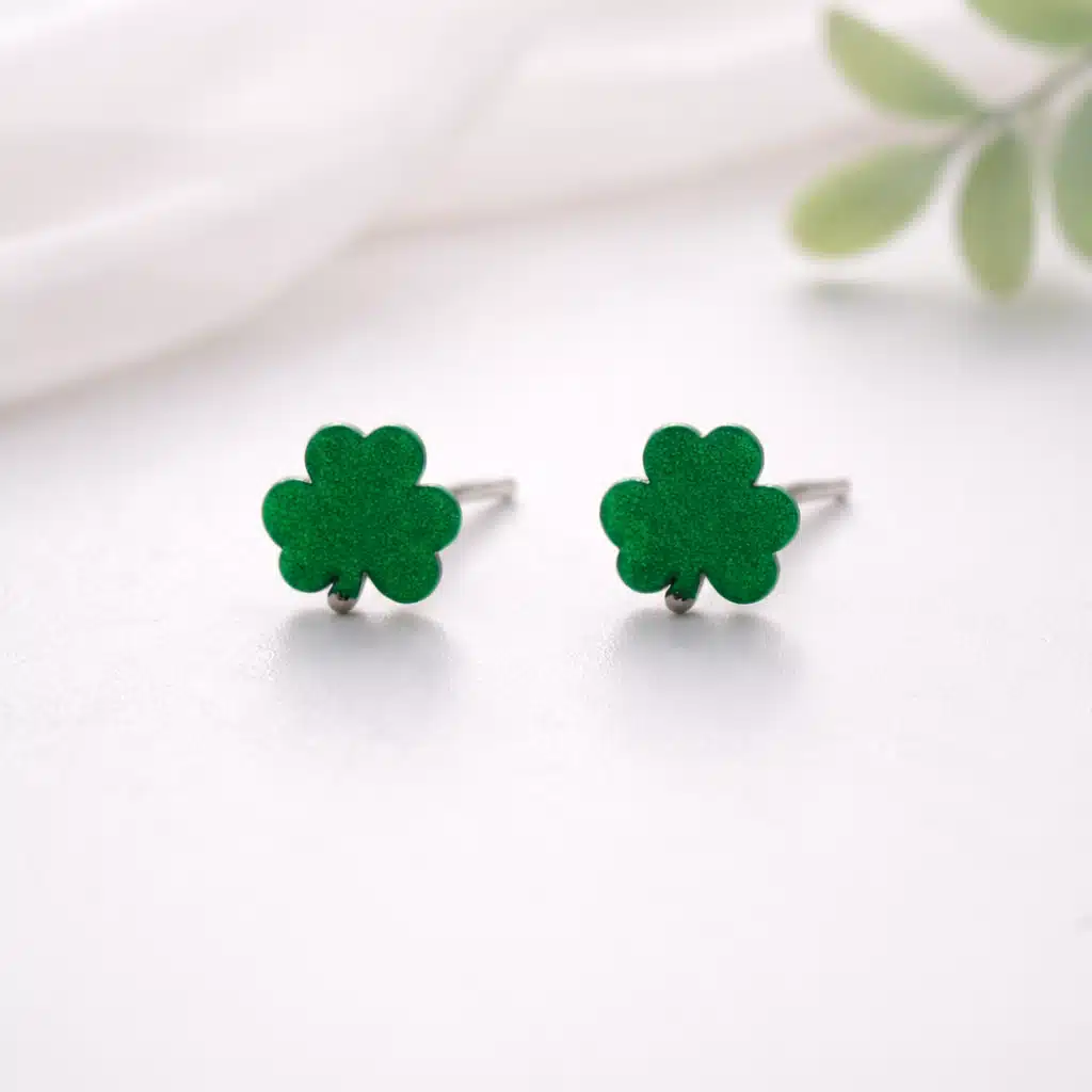 Celebrate the season in a simple, stylish way with these Shamrock Stud Earrings. Designed in a classic clover shape with a bright green finish, they’re the perfect choice for anyone who loves subtle St. Patrick’s Day jewelry. Small yet eye-catching, these studs add a festive touch without feeling oversized or flashy.