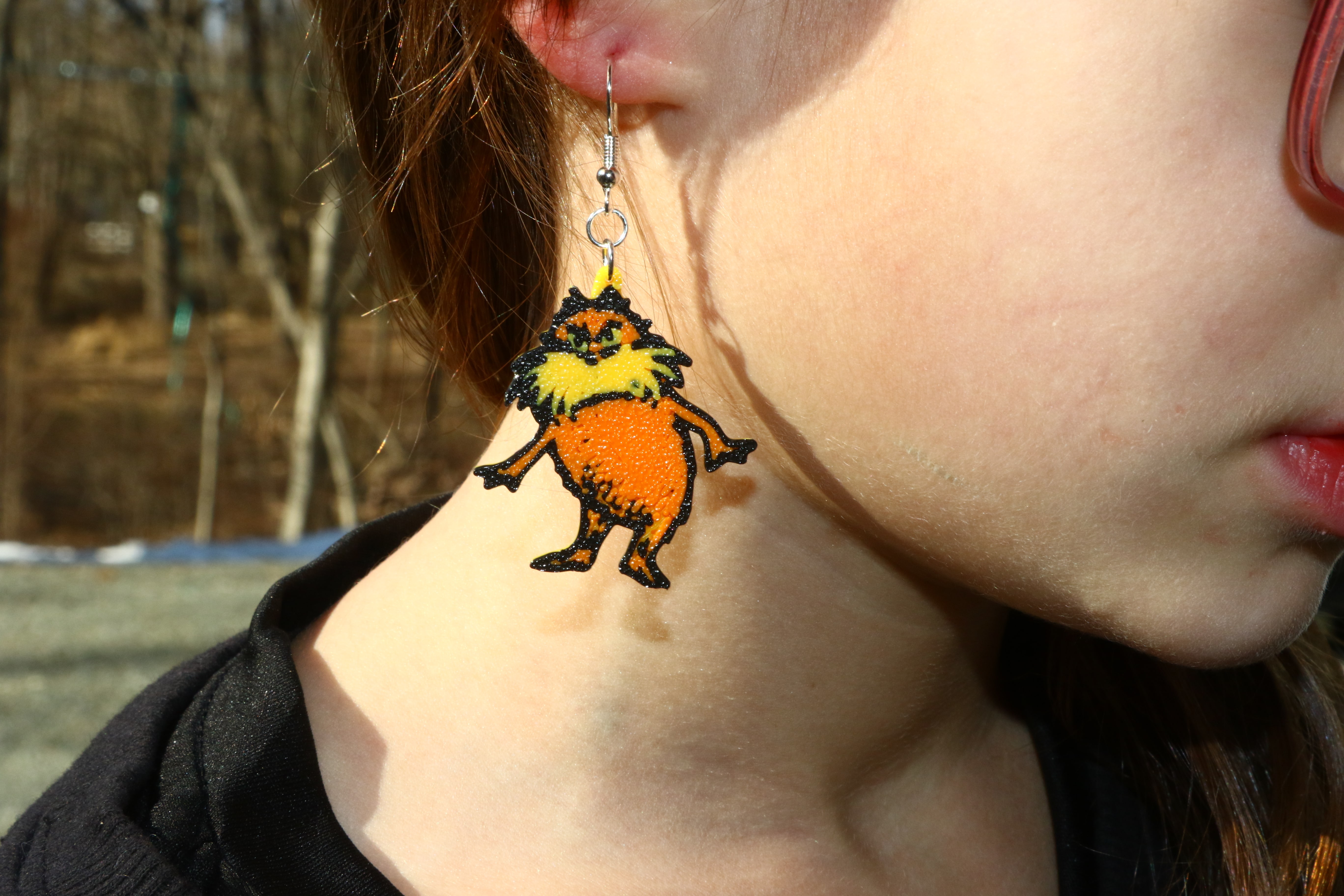 The Lorax Earrings are a playful and nostalgic accessory inspired by the beloved storybook character who speaks for the trees. Featuring a bright, recognizable design full of personality, these earrings are perfect for book lovers, teachers, readers, and fans of whimsical classics. Whether you’re heading to a themed event, classroom celebration, book fair, or simply want to add a fun pop of character to your everyday outfit, these earrings make a bold and cheerful statement.