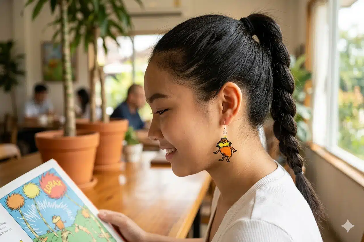 Lightweight and comfortable for all-day wear, The Lorax Earrings are easy to pair with casual outfits, literary-themed looks, or playful accessories. They also make a thoughtful gift for educators, readers, and collectors who appreciate iconic children’s literature. If you love expressive, story-inspired jewelry, these earrings are a fun way to show it.