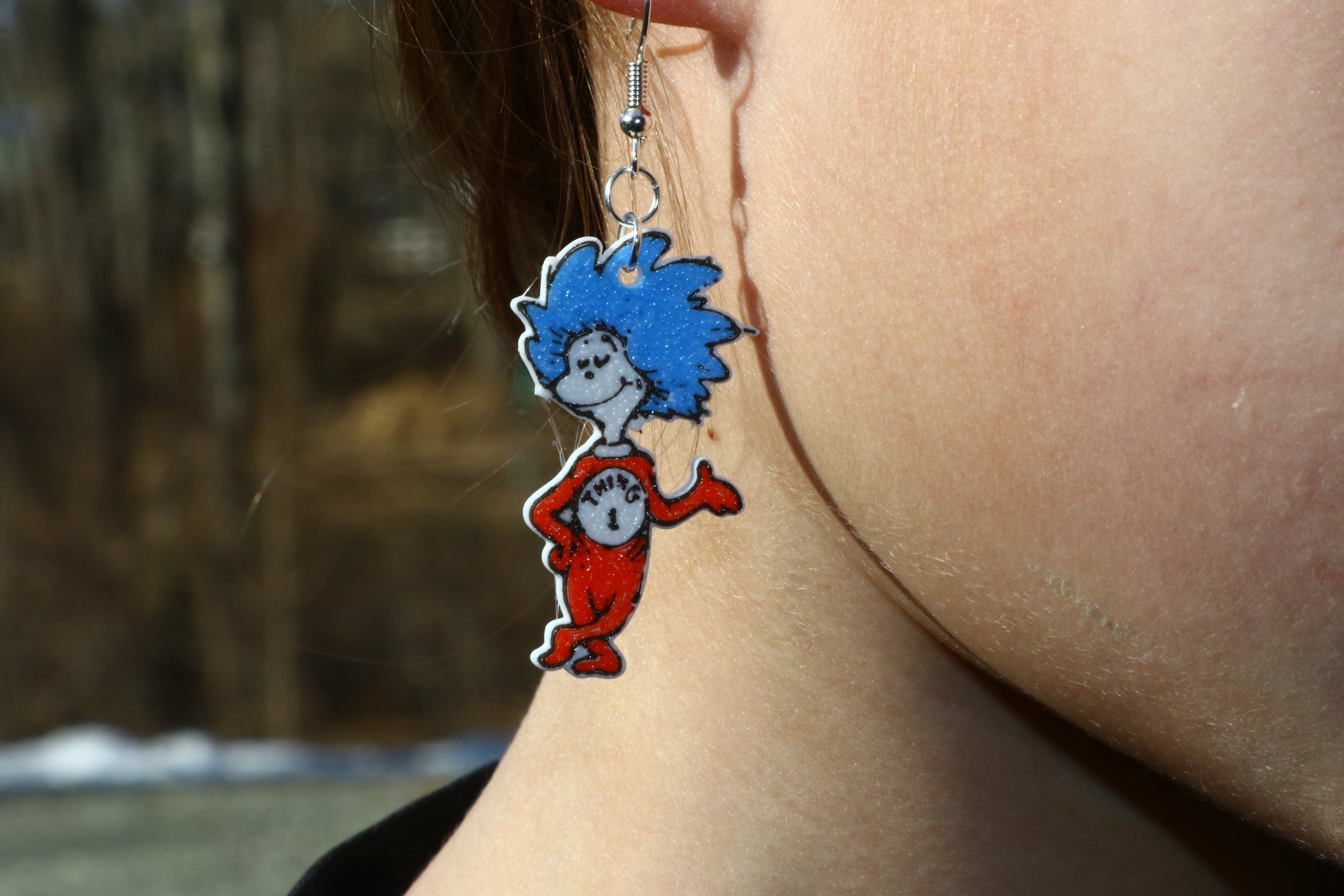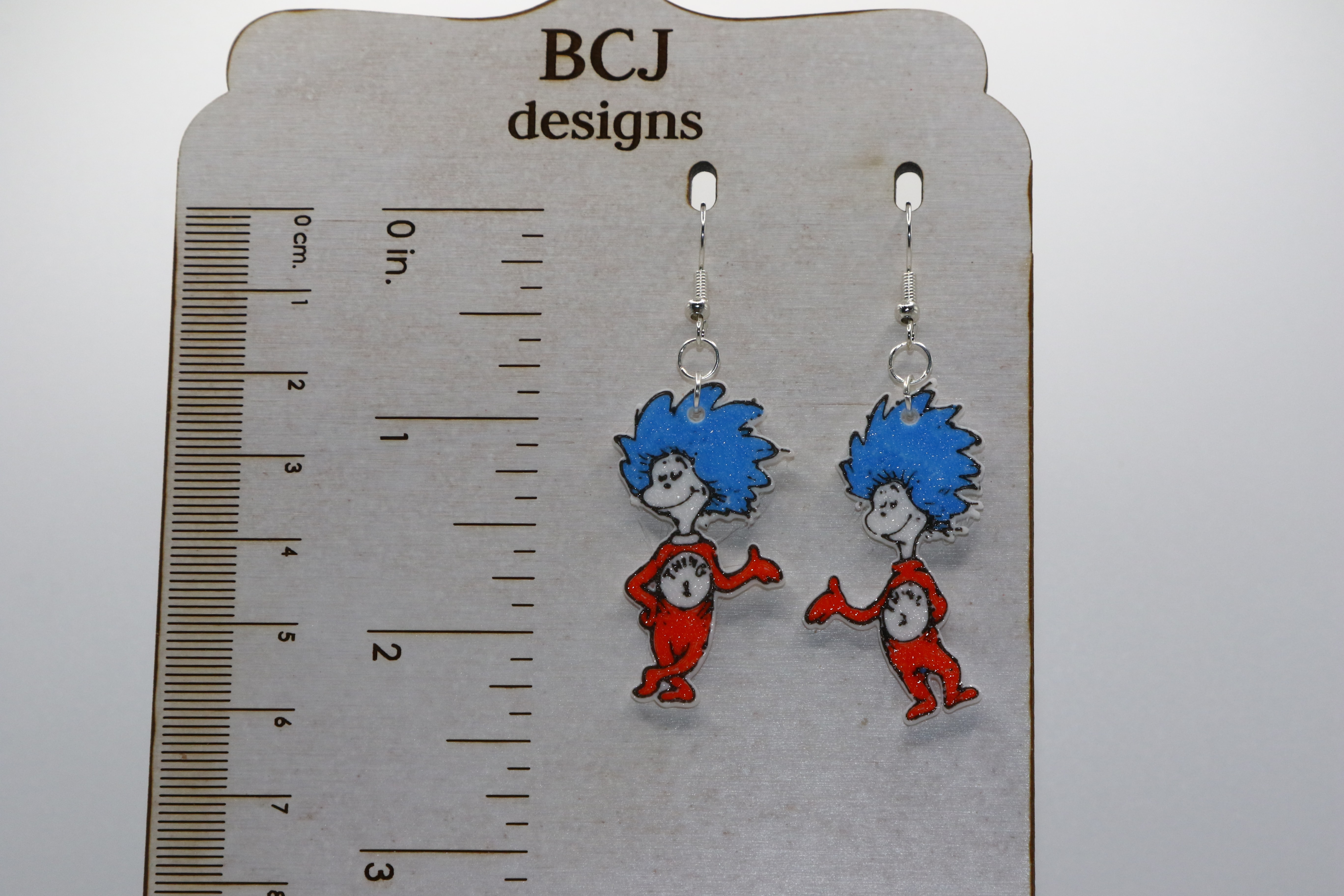 Thing 1 and Thing 2 Earrings add instant fun and personality to any outfit. Inspired by the iconic blue-haired duo, these playful earrings bring bold color and nostalgic charm to teachers, book lovers, and themed event fans alike. Lightweight and comfortable, they are perfect for spirit days, classroom celebrations, Read Across America events, or everyday whimsical style.