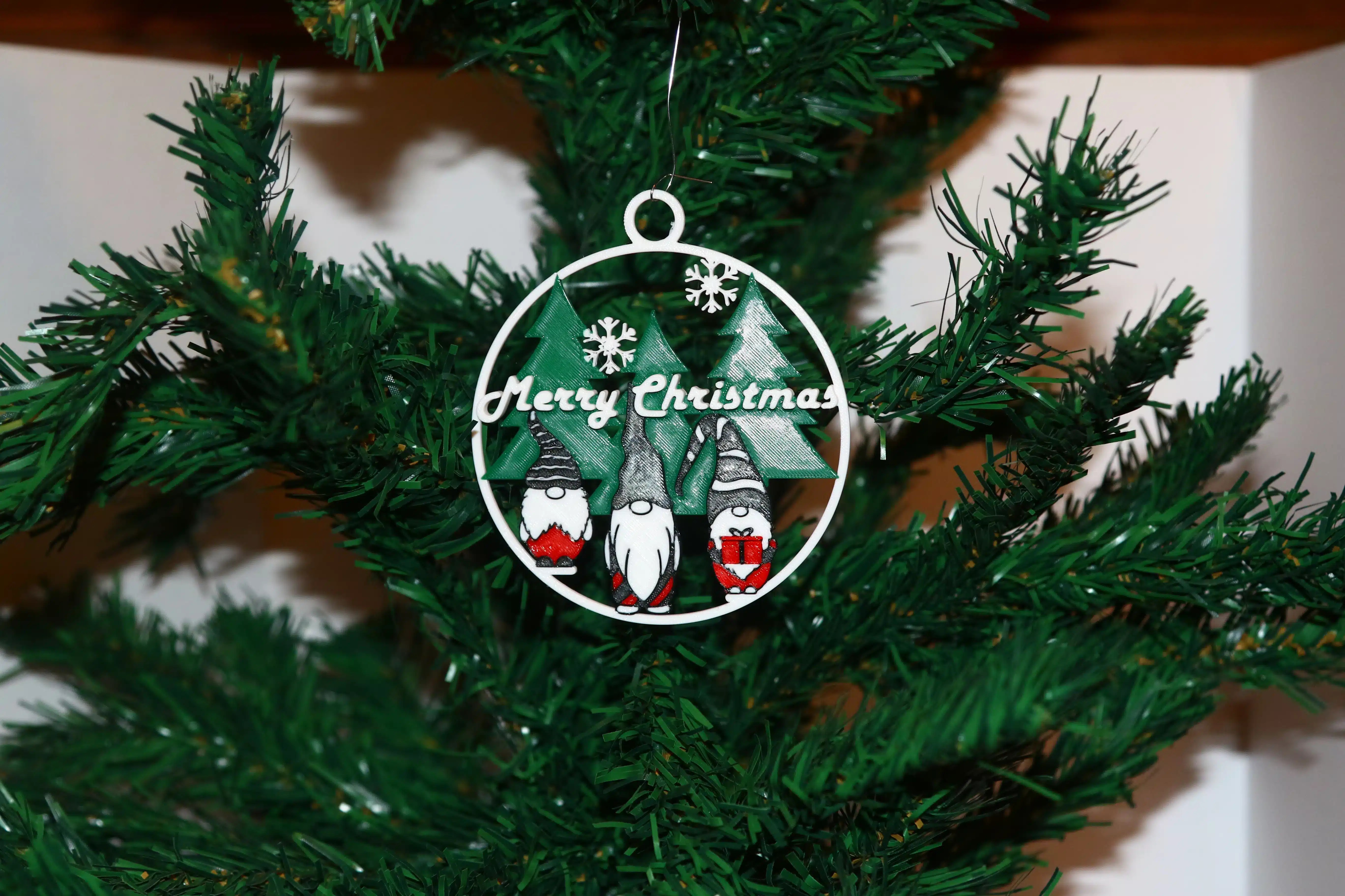 Saw this at Delcastle Tech Craft Show and instantly knew it was coming home with me. The three gnomes holding gifts add such a cozy and thoughtful touch to the tree