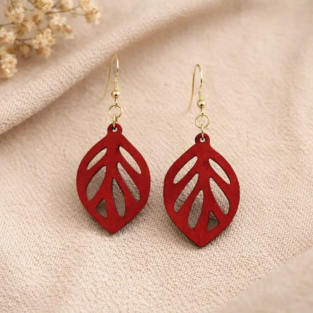 These wood leaf earrings are delicate and light. Great for casual outfits. Wore them at a show — the owner was wonderful and helpful.